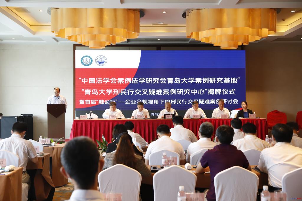 新聞網訊 9月18日,中國法學會案例法學研究會首個專業性案例研究基地落戶青島大學,基地揭牌儀式暨首屆“融論壇”——企業合規視角下的刑民行交叉疑難案例研討會在青島海景花園酒店會議中心舉行。青島大學校長夏東偉出席并致辭。中國法學會案例法學研究會會長胡云騰,最高人民法院行政審判庭原庭長、國家法官學院原院長黃永維,中國法學會案例法學研究會秘書長梁欣,青島市中級人民法院黨組書記、院長、一級高級法官李方民,青島市人民檢察院黨組成員、檢委會專職委員、二級高級檢察官孫友昌,青島市司法局黨組書記、局長萬振東受邀參加揭牌儀式并致辭。儀式由青島大學黨委常委、副校長孔偉金主持。