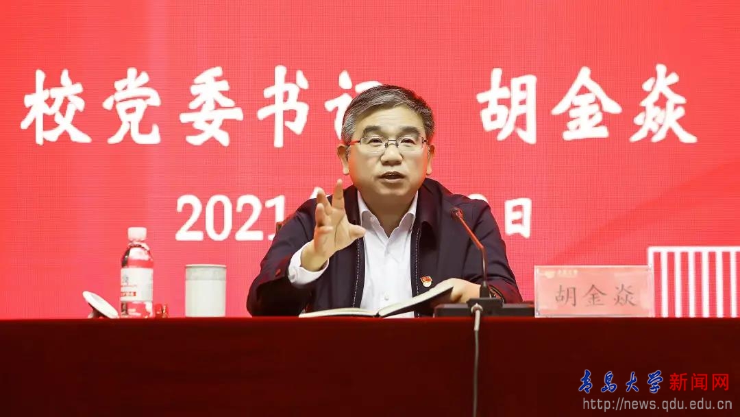 新聞網訊 10月9日上午,校黨委書記胡金焱以“回望百年,愛黨明志”為主題,為2021級本科學生講授思政課。學生工作處處長解濤主持思政課。
