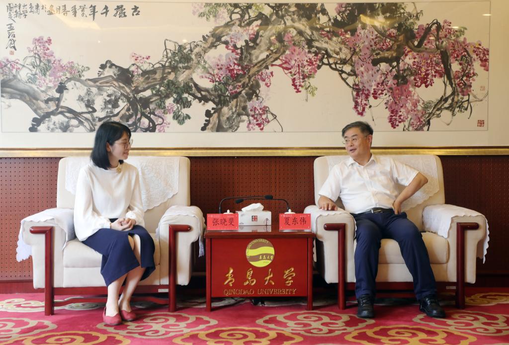 新聞網訊 6月21日下午,校長夏東偉在辦公樓204接待室會見我校“青島紅十字應急救護培訓公益形象大使”稱號獲得者張曉斐同學,并同她親切會談。