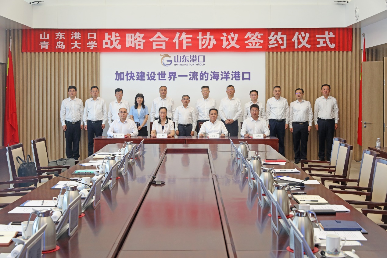 新聞網(wǎng)訊 6月30日上午,青島大學(xué)與山東省港口集團戰(zhàn)略合作協(xié)議簽約儀式在山東港口大廈舉行。校黨委書記胡金焱,紀(jì)委書記、省監(jiān)委駐青島大學(xué)監(jiān)察專員范玉斌,黨委常委、副校長劉彩云,黨委常委、組織部部長徐龍飛,山東省港口集團黨委書記、董事長霍高原,黨委副書記、董事、總經(jīng)理李奉利,黨委常委、副總經(jīng)理高亞等出席儀式。