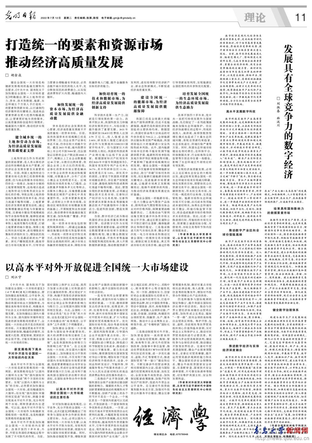 新聞網訊 7月12日,我校黨委書記胡金焱在《光明日報》發表題為“打造統一的要素和資源市場 推動經濟高質量發展”的理論文章。