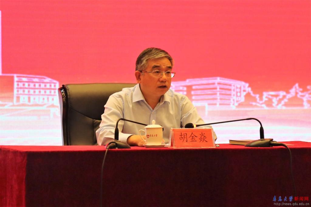 校黨委書記胡金焱在中共青島大學第三屆委員會第九次全體(擴大)會議暨2022年暑期中層干部學習研討班上作主旨報告
