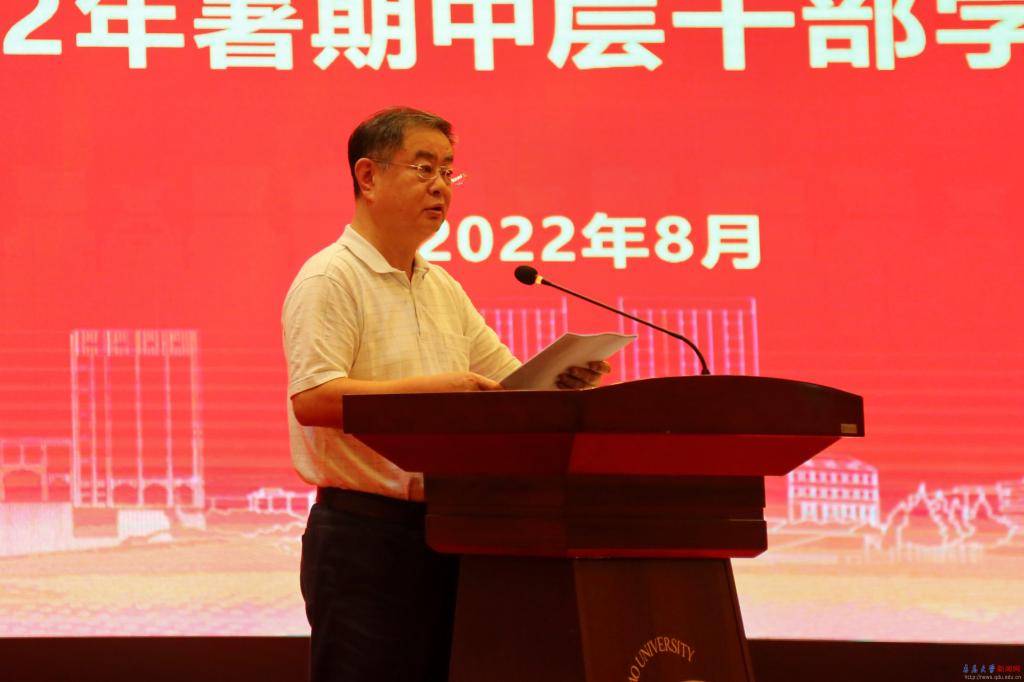 新聞網訊 8月27日上午,學校2022年暑期中層干部學習研討班在國際學術交流中心博學廳閉幕。校長夏東偉作總結講話并對下半年和開學前后的工作進行了部署。