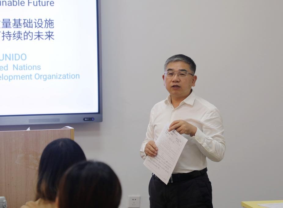 在博知樓111教室,胡金焱和同學(xué)們一起聽取質(zhì)量與標(biāo)準(zhǔn)化學(xué)院教師程馨的《國家質(zhì)量基礎(chǔ)設(shè)施》課程。胡金焱首先對此次課堂教學(xué)表示了充分肯定,隨后指出課堂教學(xué)要以學(xué)生為中心,做好課程模塊設(shè)計(jì)和過程化考核,全面提升教學(xué)質(zhì)量;任課教師要以課程網(wǎng)站建設(shè)為抓手做好教學(xué)資源供給,依托課程網(wǎng)站做好教學(xué)資源的匯集、整理和凝練,引導(dǎo)學(xué)生獲取學(xué)習(xí)資料進(jìn)行預(yù)習(xí)和復(fù)習(xí),達(dá)到線上線下教學(xué)相結(jié)合,打造高質(zhì)量“金課”。胡金焱還勉勵(lì)同學(xué)們勤奮讀書、鍛煉身體,響應(yīng)國家號召,努力成為合格的建設(shè)者和接班人。