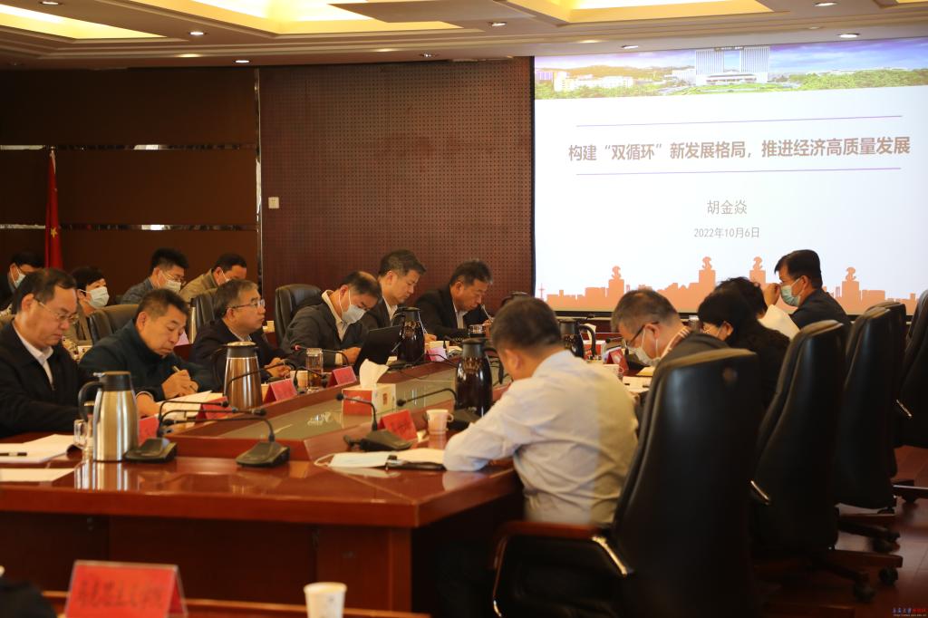 輔導報告中,胡金焱從習近平經濟思想的形成與發展、“國際大循環”經濟發展戰略的回顧、“雙循環”新發展格局的理論與實踐、供給側結構性改革推進經濟高質量發展四個方面分享了他深入學習習近平經濟思想的體會和思考,系統全面、深入淺出,對于全校廣大黨員干部深入學習領會習近平新時代中國特色社會主義思想的理論體系和豐富內涵,扎實推進黨的創新理論武裝,具有很強的指導意義。