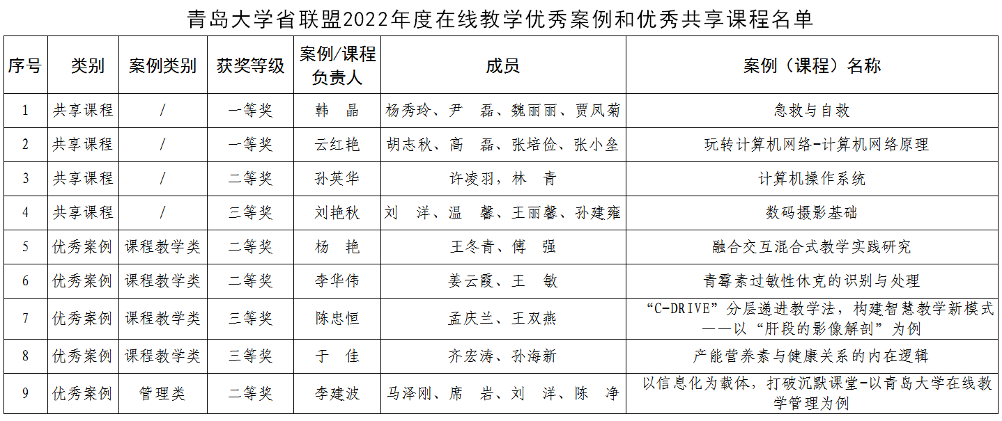 新聞網訊 近日,山東省教育廳下發了《山東省高等學校課程聯盟關于公布2022 年度在線教學優秀案例和優秀共享課程名單的通知》。我校共獲批9項,其中優秀共享課程4門,在線教學優秀課程教學類案例4項,優秀管理類案例1項。