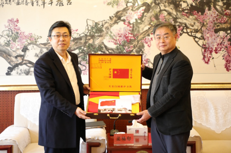 會見儀式上,梁楠郁向學校捐贈了一面2022年6月16日在北京天安門廣場升起的五星紅旗。夏東偉代表學校向梁楠郁贈送了張嗣瀛院士紀念畫冊、慶祝合并辦學30周年紀念品。