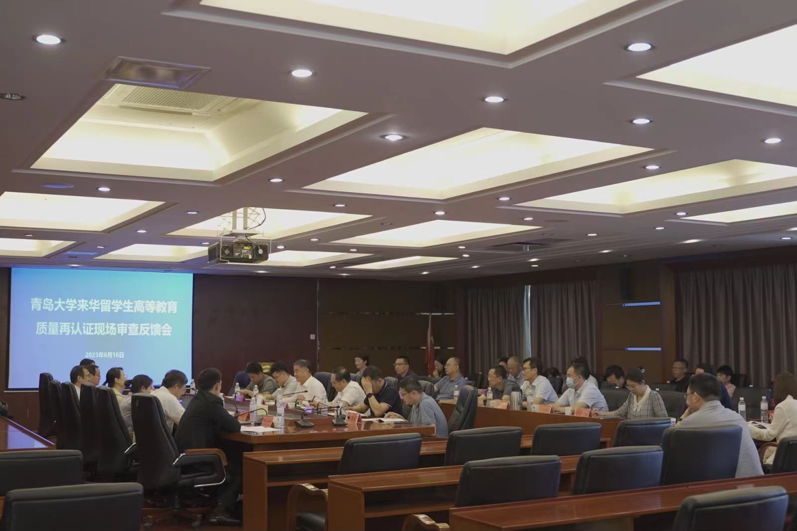 6月16日上午,現場審查意見初步反饋會舉行,李軍主持會議。韓維春代表再認證小組反饋現場審查初步意見。專家組認為,學校重視來華留學工作頂層設計,建有較為完善的管理體系,走出了服務國家政治外交戰略和地方區域經濟社會發展的來華留學特色發展之路;學校來華留學工作依托青島地域優勢,強化“留學青大”品牌,著力擴大學生規模,持續優化學生結構,規模、效益等均居山東省屬高校前列,為學校的國際化辦學發揮了積極的促進作用;學校拓展宣傳途徑和招生渠道,創新教育項目和培養模式,留學生實習實踐活動豐富多彩。同時,專家組也從加強頂層設計,優化歸口管理部門設置,均衡留學生專業結構,推進“趨同化”管理和加強制度建設等方面提出了中肯的意見和建議。梁梓對學校來華留學教育的發展給予了肯定和期望。