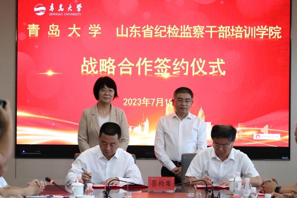 儀式上,夏東偉代表青島大學與省紀檢監察干部培訓學院簽署戰略合作協議,范玉斌代表青島大學同青島、東營、煙臺、威海、日照等五市紀委監委主要負責同志簽署合作共建協議。山東省紀委監委和青島大學主要負責同志為青島大學紀檢監察學院揭牌。