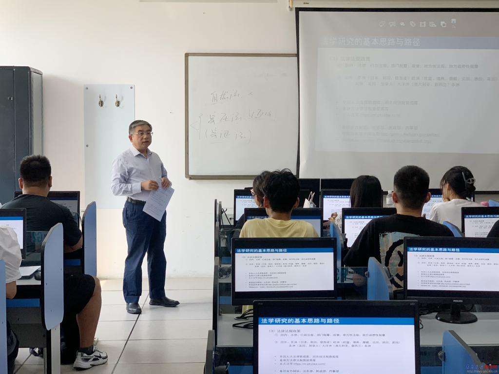 在浩園1號(hào)教學(xué)樓607教室,胡金焱聽(tīng)取了法學(xué)院教師石慧的《憲法專題》課程。課后,胡金焱對(duì)同學(xué)們說(shuō),兩年的專業(yè)碩士學(xué)習(xí)是夯實(shí)專業(yè)基礎(chǔ)、精進(jìn)專業(yè)能力的關(guān)鍵時(shí)期,希望大家在法理基礎(chǔ)上繼續(xù)加強(qiáng),有更深厚的學(xué)術(shù)基礎(chǔ)。胡金焱還與學(xué)生們分享了自己的學(xué)習(xí)體驗(yàn),勉勵(lì)大家在研究生學(xué)習(xí)階段學(xué)有所成,積累踏入社會(huì)的底氣和功力。