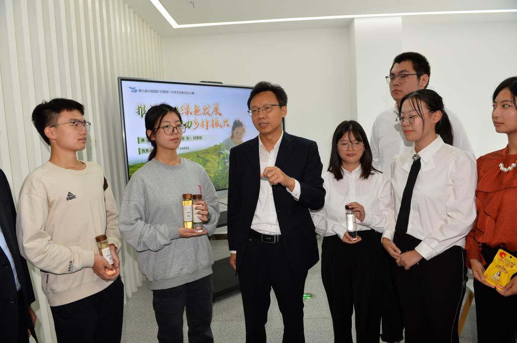 調(diào)研組一行參觀調(diào)研了慧創(chuàng)空間、國家大學(xué)生文化素質(zhì)教育基地。吳愛華看望了在創(chuàng)客空間備賽中國國際“互聯(lián)網(wǎng)+”大學(xué)生創(chuàng)新創(chuàng)業(yè)大賽的師生團隊,觀摩并指導(dǎo)路演,勉勵大家要厚植愛國情懷、“敢闖、會創(chuàng)”,積極開展公益性創(chuàng)業(yè)。