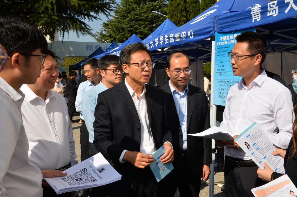 調(diào)研組還實地調(diào)研指導(dǎo)“百家名企聯(lián)合招聘會”,吳愛華與用人單位和畢業(yè)生進行親切交流,向用人單位了解今年招聘需求與往年的增減情況,重點了解學(xué)生的求職意向及職業(yè)規(guī)劃情況。他勉勵學(xué)生完善自我、積極求職,不斷提升專業(yè)水平和技能水平,為服務(wù)國家建設(shè)和區(qū)域經(jīng)濟發(fā)展貢獻智慧和力量。本場參會企業(yè)共計100家,提供崗位數(shù)457個,招聘需求人數(shù)4787人,招聘企業(yè)中行業(yè)頭部企業(yè)占本場招聘會10%,專精特新企業(yè)占本場招聘會為20%。2000余名畢業(yè)生參加本次招聘會共投遞簡歷數(shù)5865份。