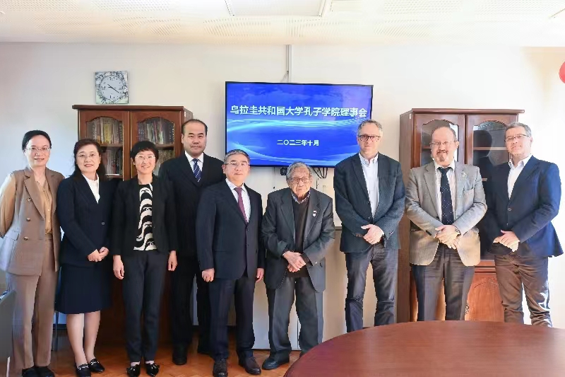 在烏拉圭共和國大學訪問期間,兩校舉行了烏拉圭共和國大學孔子學院2023年度理事會,胡金焱和烏拉圭共和國大學校長阿里姆(Rodrigo Arim)等中外方理事與代表參加會議。會議聽取了孔子學院中外方院長關于2022年工作總結和2023年工作計劃匯報,審議通過孔子學院2022年度決算和2023年度預算。會議還就下一步兩校在繼續加強孔子學院合作建設的基礎上開展人文交流和科研合作等事宜進行了探討。