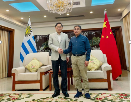 在訪問中國駐烏拉圭大使館期間,中國駐烏拉圭大使黃亞中對孔子學院的工作給予高度評價,表示支持推進兩校在各領域的交流與合作,鼓勵青島大學立足自身優勢,擴大與烏拉圭科技合作的領域與范圍。