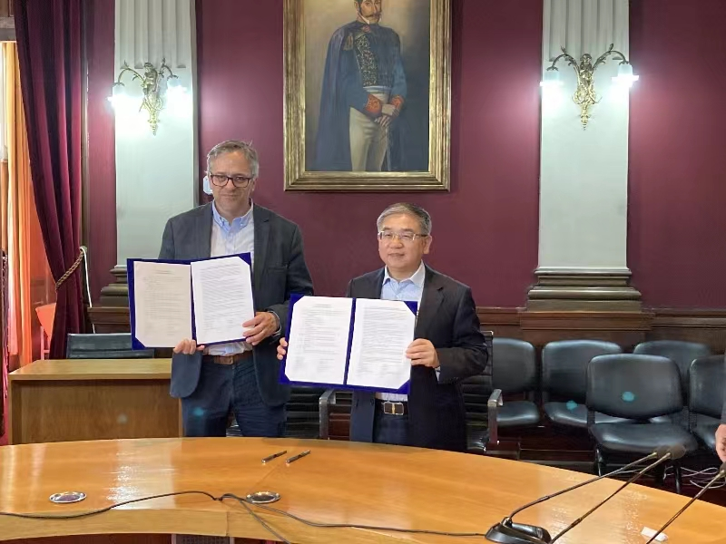 胡金焱和阿里姆代表兩校簽署了《青島大學與烏拉圭共和國大學關于推進合作科學研究諒解備忘錄》,雙方決定合作共建納米生物制藥聯合實驗室、中國-烏拉圭文化聯合研究中心,合作開展“一帶一路”和中國研究,鼓勵雙方學者共同申報兩國政府或政府間科研合作項目,積極推薦合適人員到對方研究機構(中心)合作開展科研和教學活動。