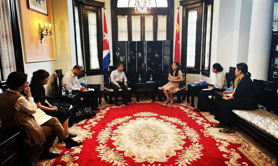 在拜訪中國駐古巴大使館時,文化參贊韓立昕說中古現在處于新時代特殊友好時期,古巴在生物制藥和醫療工程等領域具有較高水平。他鼓勵青島大學在與哈瓦那大學深化教育合作的基礎上,積極拓展合作對象與領域。
