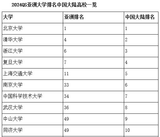 中國192所大學進入QS2024亞洲大學排行榜。其中,中國大陸133所,中國香港10所,中國臺灣46所,中國澳門3所。
