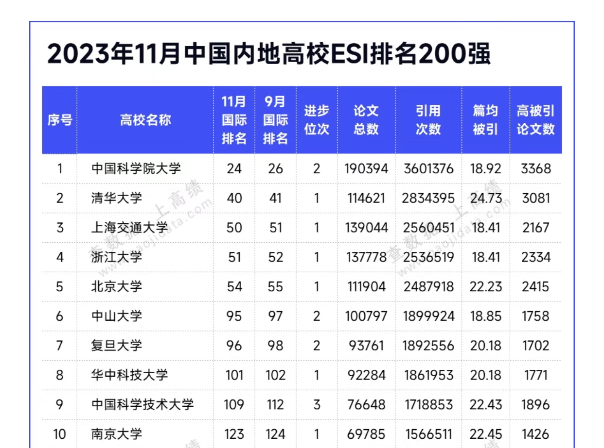 11月9日,科睿唯安(Clarivate Analytics)公布了2023年11月的ESI最新數據。我校在本次中國內地高校ESI 200強中,排名第58位,國內排名與往年持平,國際排名從去年586位上升至579位。