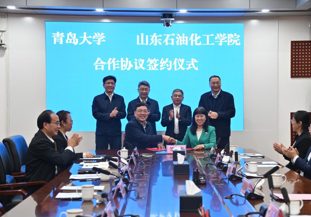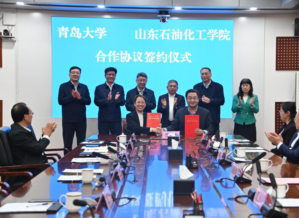 胡金焱對山東石油化工學院給予學校的關心和支持表示感謝,充分肯定了山東石油化工學院的辦學理念和發展前景。他從辦學歷史、學科建設、人才隊伍、綜合實力等方面介紹了青島大學的基本情況和近年來事業快速發展取得的成績。他指出,兩校同為地方高校,交流交往密切,雙方資源互補,合作前景廣闊。希望雙方深入貫徹落實黨中央“教育、科技、人才”三位一體戰略部署,把握發展機遇,加強交流合作,構建更加廣泛、更有深度、更加緊密的合作關系,深化科教、產教融合,共同推進山東高等教育發展,在服務黃河重大國家戰略和區域發展中貢獻更大力量。