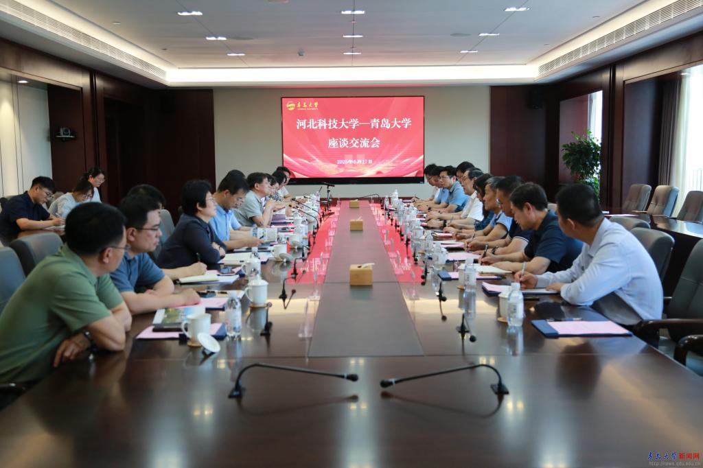 魏志強代表學校對李鐵軍一行的來訪表示熱烈歡迎,并從辦學歷史、學科建設、社會服務等方面簡要介紹了近年來學校事業發展的基本情況。他表示,青島大學立足“醫工交叉、特色鮮明,文理支撐、綜合厚重”的辦學治校優勢,以一流目標、一流思想、一流行動、一流合作謀發展,努力開創學校高水平綜合性研究型大學建設新篇章。未來,希望兩校進一步拓展合作領域,深化戰略合作,共同推動兩校事業向更高質量邁進。