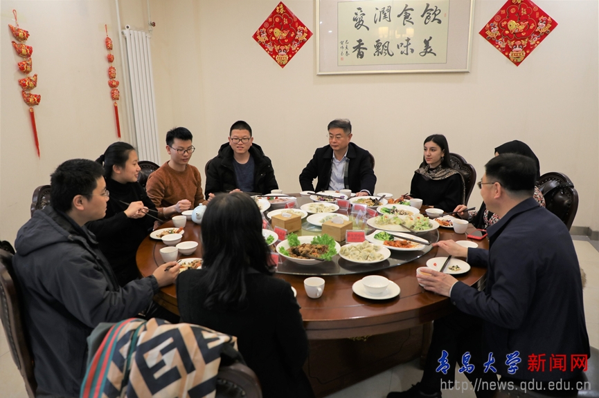 在仁園餐廳,夏東偉與留校的3名河北籍同學和10余名留學生一起寫福字,吃餃子,送祝福,餐廳里歡聲笑語,暖意融融,洋溢著喜慶祥和的節日氣氛。
