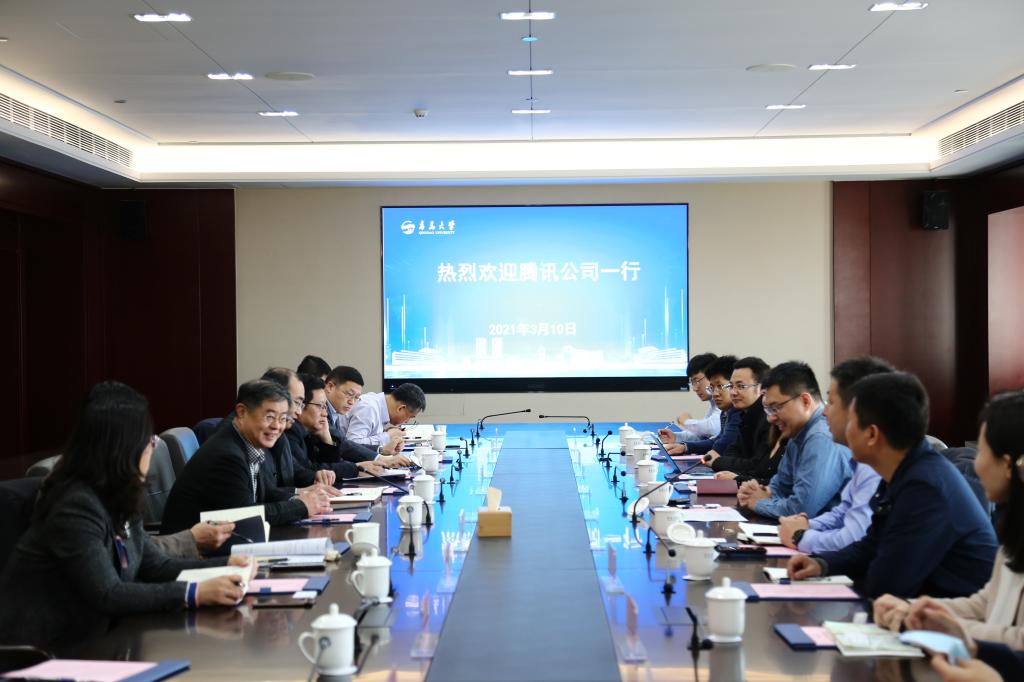 夏東偉代表學校對騰訊公司一行來訪表示歡迎,他簡要介紹了我校概況和近年在人才培養、學科建設、師資隊伍、成果轉化等方面取得的成就,著重介紹了我校圍繞科技創新、學科群建設、服務社會開展的重點工作。他表示,騰訊在人工智能、大數據等研究領域擁有豐富經驗,取得了許多成績,學校愿與騰訊攜手并進,共同推動國家高等教育、健康產業發展進步。