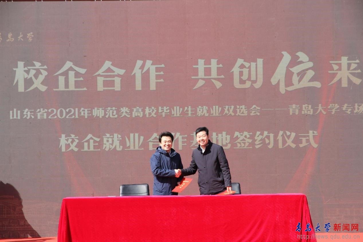 為進一步加強學校與用人單位就業(yè)合作,深化校地(企)聯(lián)動,搭建快捷有效的雙選平臺,促進人才與智力相互支持,實現(xiàn)互惠共贏,借此次雙選會之際,學?,F(xiàn)場與20家優(yōu)質(zhì)企業(yè)簽署“就業(yè)合作基地”協(xié)議。山東省教育廳高校學生處副處長任永紅,校黨委常委、副校長劉彩云出席簽約儀式。