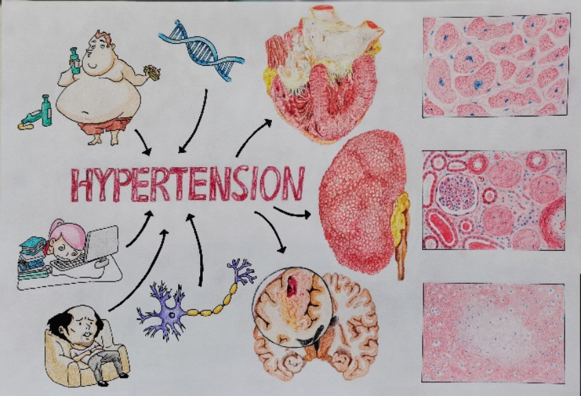 基礎醫學院基礎醫學國家級實驗教學示范中心(青島大學)通過承辦青島大學第二屆形態學繪圖大賽,選拔優秀作品參加全國“高等醫學院校第二屆大學生形態學繪圖作品評選”。開始征稿以來,來自2019級、2020級、2021級臨床醫學、預防醫學、藥學、醫學檢驗、口腔醫學及醫學影像等各專業的學生踴躍參加活動,源源不斷的精彩作品,通過形態學創意手工繪圖、機繪三維建模等方式呈現著醫學形態結構的特點,體現著醫學生的藝術與創意。從70份收集到的作品中,從科學性、規范性、綜合性、創意性及應用性等多個層面進行綜合評價,17副作品報送到全國“高等醫學院校第二屆大學生形態學繪圖作品評選”。最終,王紫懿《煙渺渺兮肺心寒》、魯逸名《高血壓的“前因后果”》等兩幅作品獲得一等獎:代逸凡《視網膜萬花筒》、孫玥《生命起源》、劉小瑜《心·花敗》、張晨彤《風濕性心臟病》、魏愷《風吹草地見包蟲》等5副作品獲得二等獎;田康祺《鏡下的永恒之美》、楊佳欣《識“肺”》、王雨欣《生命的獻花》、劉艷娜《病毒性肺炎》、韓培航《肝細胞癌的病理變化》、龐浩《要愛不要“艾”》等6副作品獲得三等獎。