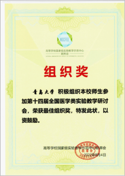 新聞網訊 近日,由高等學校國家級實驗教學示范中心聯席會基礎醫學組主辦、海南醫學院承辦,山東數字人科技股份有限公司協辦的“高等醫學院校第二屆大學生形態學繪圖作品評選”活動于海口順利舉行。基礎醫學院教師指導學生在此次活動中斬獲佳績,獲一等獎2項,二等獎5項,三等獎6項,青島大學榮獲最佳組織獎(全國僅5所高校)。