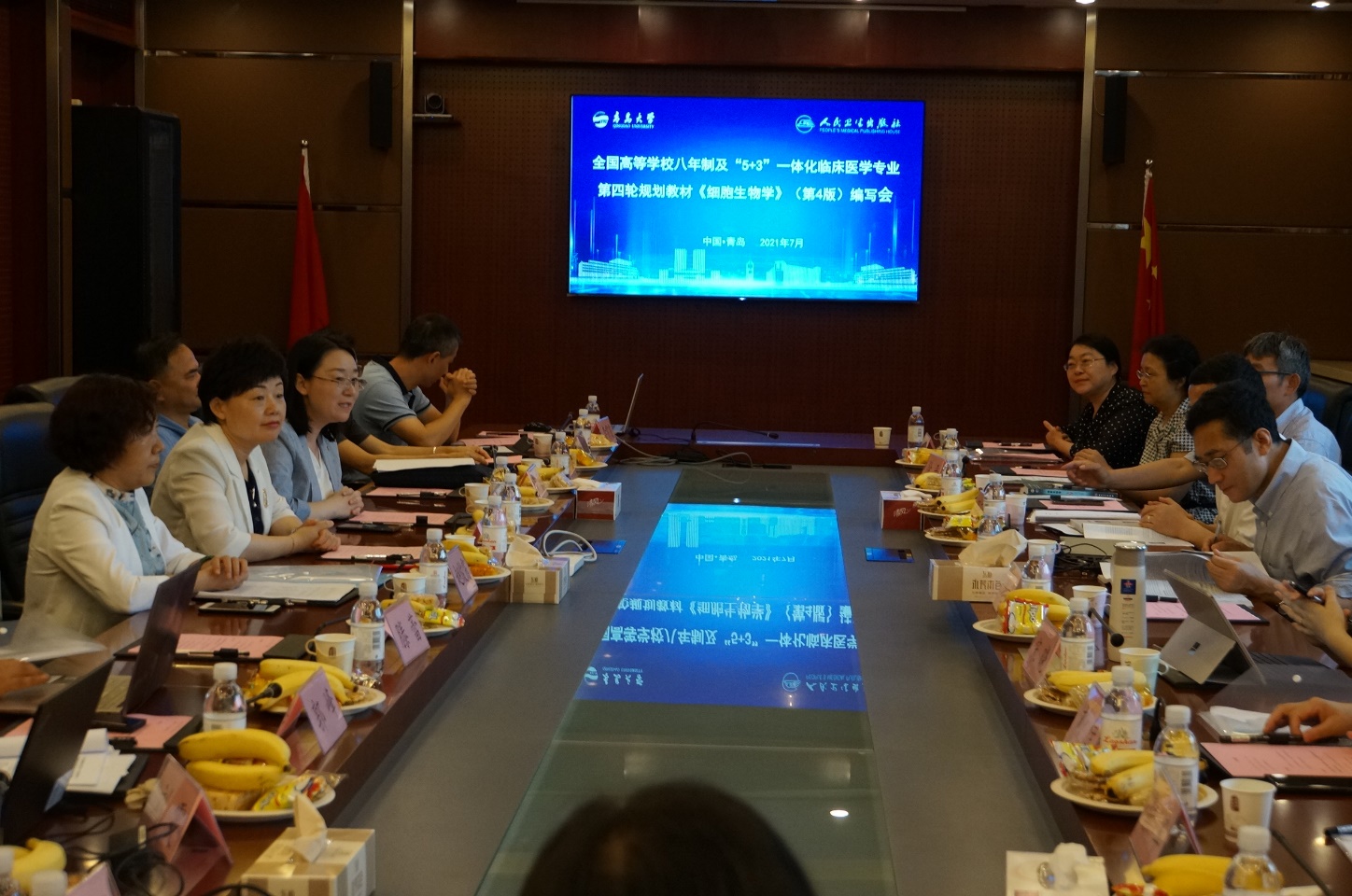 新聞網訊 7月16日,全國高等學校長學制臨床醫學專業第四輪規劃教材《細胞生物學》(第4版)編寫會在我校成功舉辦,來自復旦大學上海醫學院、浙江大學醫學院、哈爾濱醫科大學等全國15所學校的17位編委專家和人衛社編輯參加本次教材編寫會議。會議由青島大學醫學部副部長、基礎醫學院遺傳與細胞生物學系主任李冰教授主持。