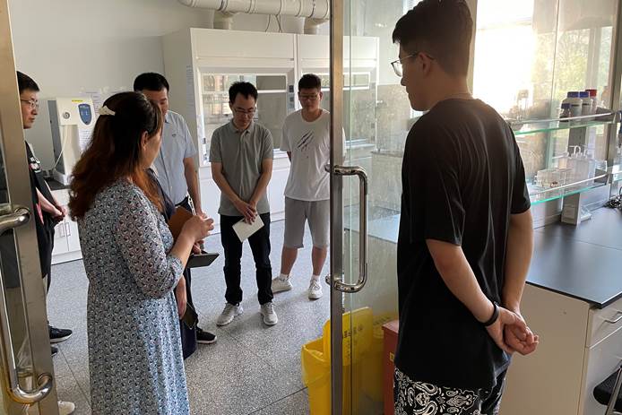 實驗室副主任郝曉麗帶領各課題組安全聯絡員老師逐一檢查了國家重點實驗室樓宇內18個課題組和平臺實驗室的安全衛生情況,重點檢查了實驗室的水電氣安全、儀器設備安全、日常衛生、安全日巡查落實情況、管控類危化品保管及使用記錄等,對存在的隱患現場提出整改意見。