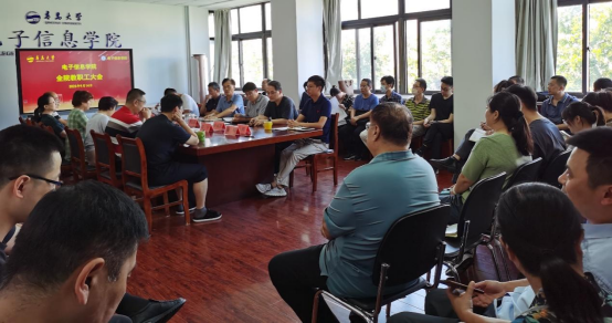 新聞網訊 9月14日下午,電子信息學院召開全院教職工大會傳達學校會議精神部署學院落實意見,學院黨委書記張啟春主持會議。