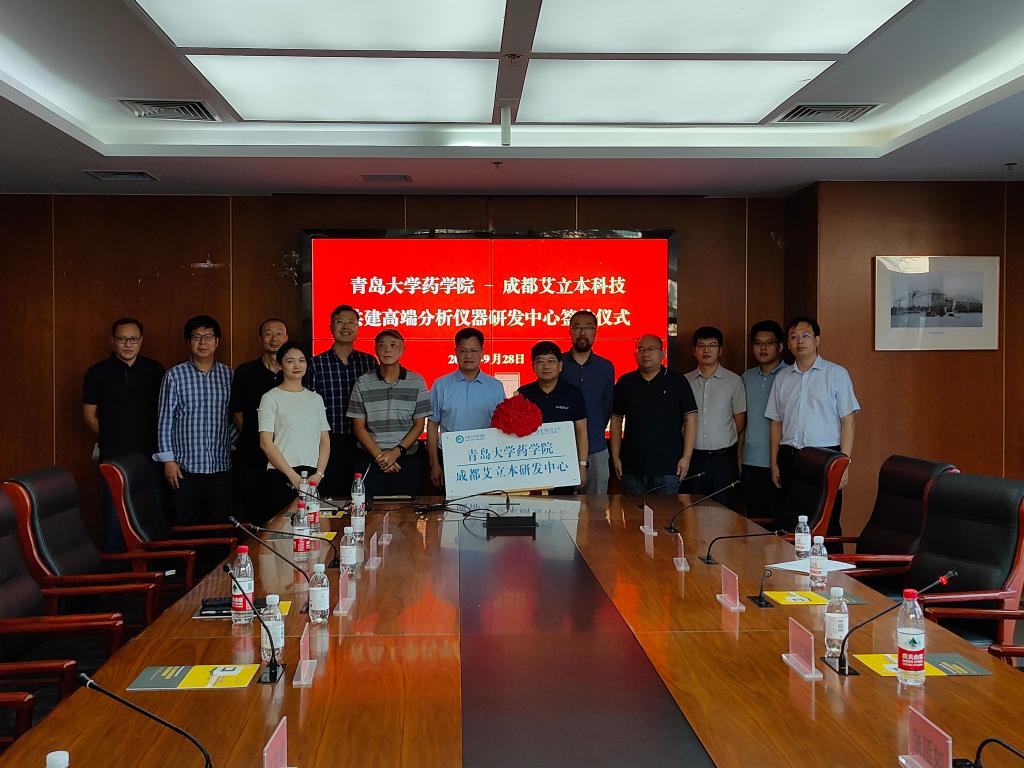 新聞網訊 近日,青島大學藥學院與成都艾立本科技有限公司共建高端分析儀器研發中心的簽約儀式在浩園醫學教育綜合樓舉行。艾立本科技有限公司董事長段憶翔、藥學院黨委書記李在寶、院長張漢霆以及藥學院教師代表參加儀式。
