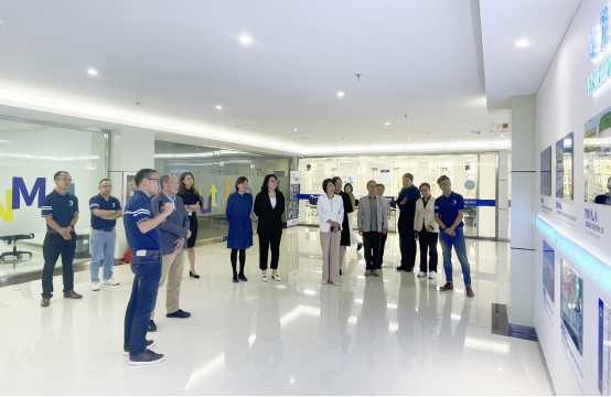簽約儀式后,大家參觀了達能特殊營養品(青島)有限公司的乳制品自動化生產包裝流水線,對產品質量控制、工廠低碳環保設施進行了實地考察調研。