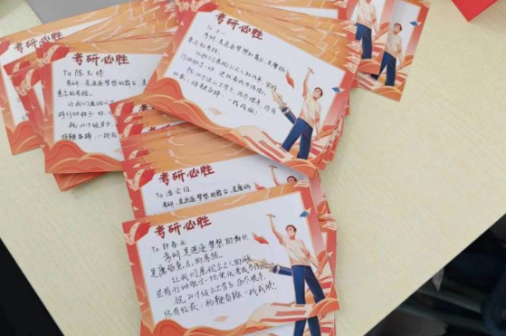 學(xué)院黨政領(lǐng)導(dǎo)共同為考研學(xué)子送上學(xué)習(xí)用品、生活用品及祝福卡。