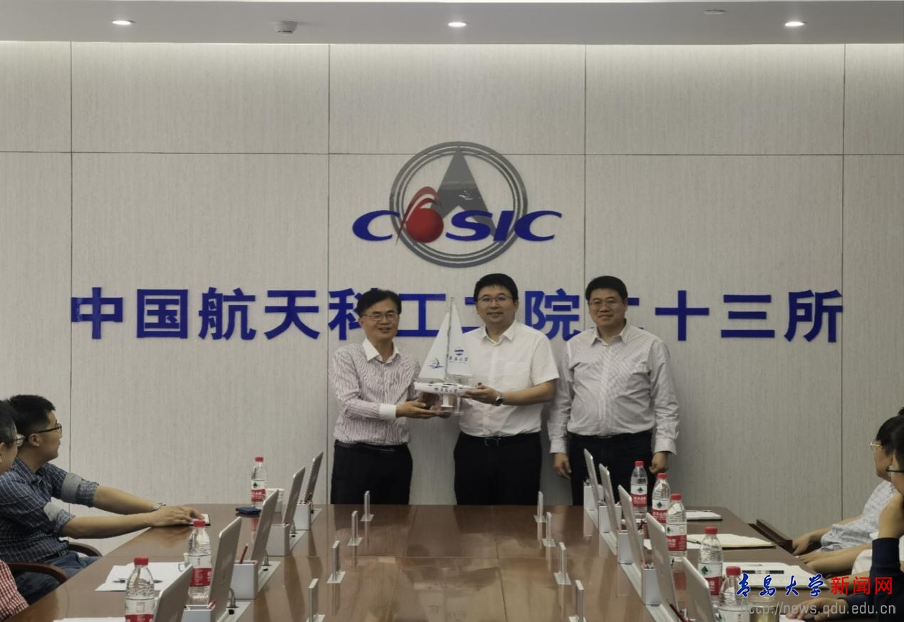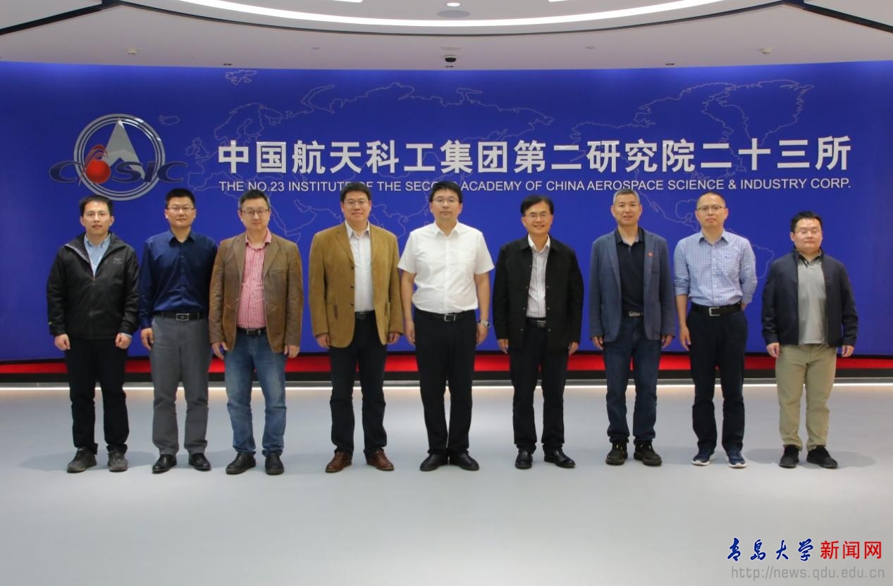 在航天二院,學院電子信息工程專業04屆校友、23所副所長孟飛,二院資產運營部李江琦處長、產業發展部楊全義處長等校友以及23所有關部室負責人進行座談交流。孟飛帶領大家參觀了23所展室,介紹了航天二院事業發展的成果。李山東介紹了青島大學和電子信息學院情況,并就學院學術團隊和重點科研方向做了解讀,雙方圍繞學科建設、產學研合作和學生聯合培養等方面進行了深入的交流探討,達成了合作意向。