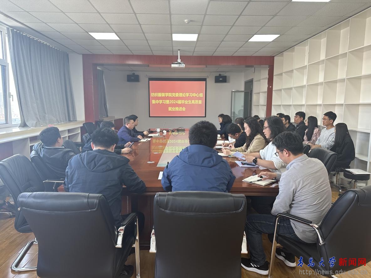 新聞網訊 5月9日,紡織服裝學院黨委理論學習中心組政治理論學習暨2024屆畢業生高質量就業推進會在學院會議室召開。學院領導班子成員、黨支部書記、教學系(實驗中心)主任、研究生導師團隊負責人參加。會議由院黨委書記李凌云主持。