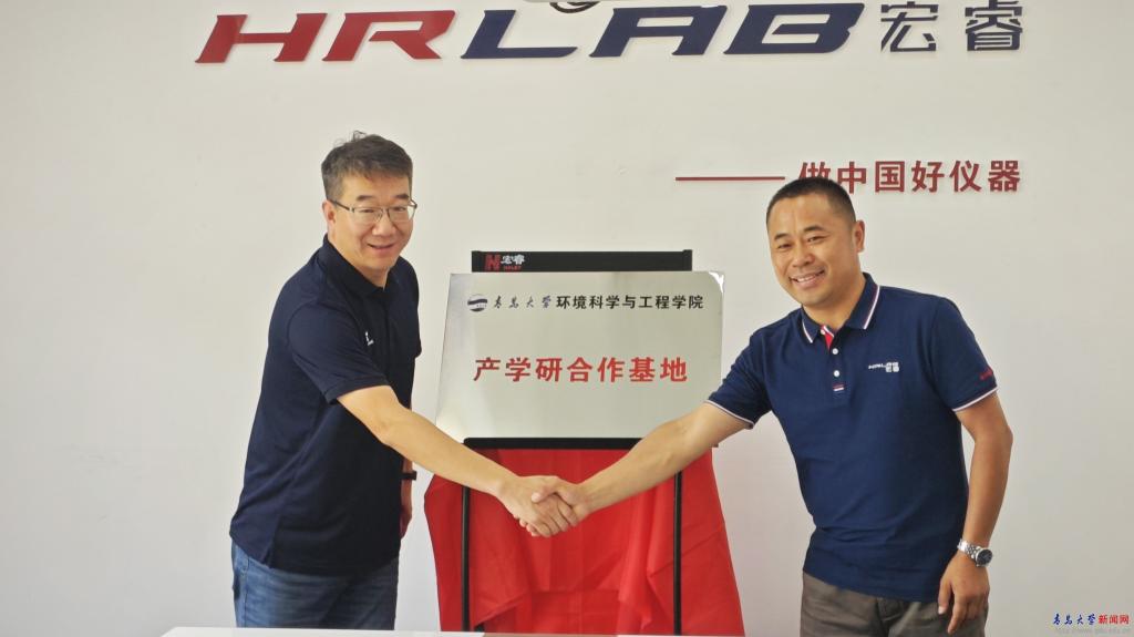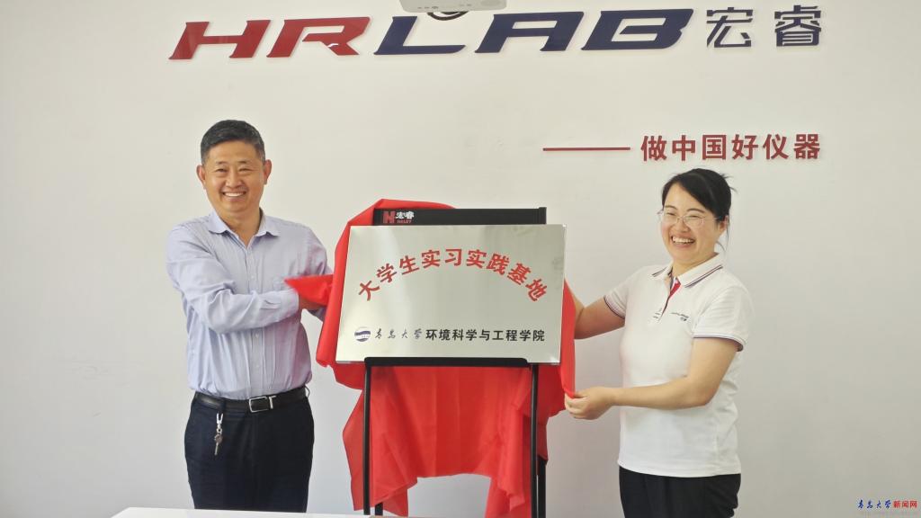 會上,雙方共同簽署了《青島大學環境科學與工程學院與山東宏睿分析儀器有限公司產學研合作協議》,并為產學研合作基地、大學生實習實踐基地和聯合應用實驗室揭牌。
