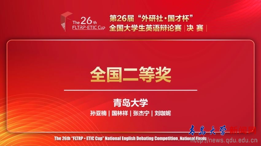 新聞網(wǎng)訊 6月1日至2日,第26屆“外研社·國才杯”全國大學(xué)生英語辯論賽全國決賽在線上舉行。我校計算機科學(xué)技術(shù)學(xué)院張杰寧與外語學(xué)院劉珈妮兩位同學(xué)代表我校參賽,取得了全國二等獎的優(yōu)異成績。公共外語教育學(xué)院孫亞楠等老師獲得優(yōu)秀指導(dǎo)教師獎。