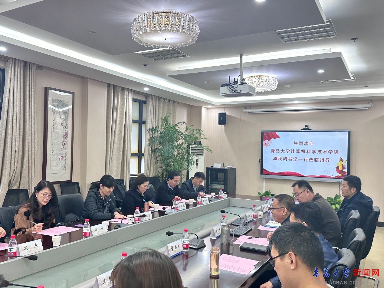 潘秋鴻對電子工程與光電技術學院的熱情接待表示感謝,認為作為“全國黨建標桿院系”及“全國黨建樣板支部”創建單位,貴院在黨建工作與業務工作深度融合等方面的經驗做法具有非常強的借鑒啟示作用,并就青島大學計算機科學技術學院的基本情況、專業建設、師資隊伍、科研情況、社會服務等方面進行了介紹。