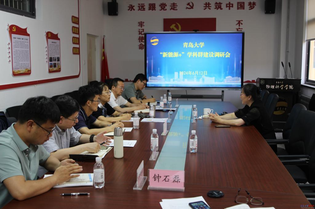 何燕對學院能源物理方向在科學研究、人才建設、人才培養等方面取得的成績表示贊賞。她強調,“新能源+”學科群建設的目的是立足青島產業發展需求,聚焦我校新能源優勢學科,以“政產學研用”協同構筑學科群建設新生態,切實提升我校“新能源+”學科群綜合實力,承擔起國家級、省部級重大科研項目,更好地為地方經濟社會發展服務。隨后,她結合學校目前新能源學科實際,從學科團隊組建、產學研合作、大項目建設等方面對“新能源+”學科群建設提出了明確指導性意見。她說,青年人才要注重組建團隊、帶好隊伍,形成梯隊,充分發揮國家級人才牽引的作用,在科研上尋求新突破;學科相近學院要圍繞“新能源+”形成交流機制,探索大學科方向下設立多團隊的鏈式發展模式,積極尋求交叉合作的新亮點;要開闊思路,積極與企業加強溝通交流,創新“新能源+”產學研合作模式,拓展事業發展新的增長點。她希望,通過大家共同努力切實做好“新能源+”學科群建設規劃,與企業開展深入合作,打造好“新能源+”高端支撐平臺,為學校更好服務地方經濟社會發展做出新的貢獻。