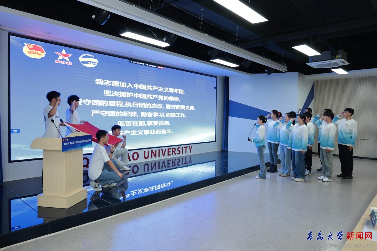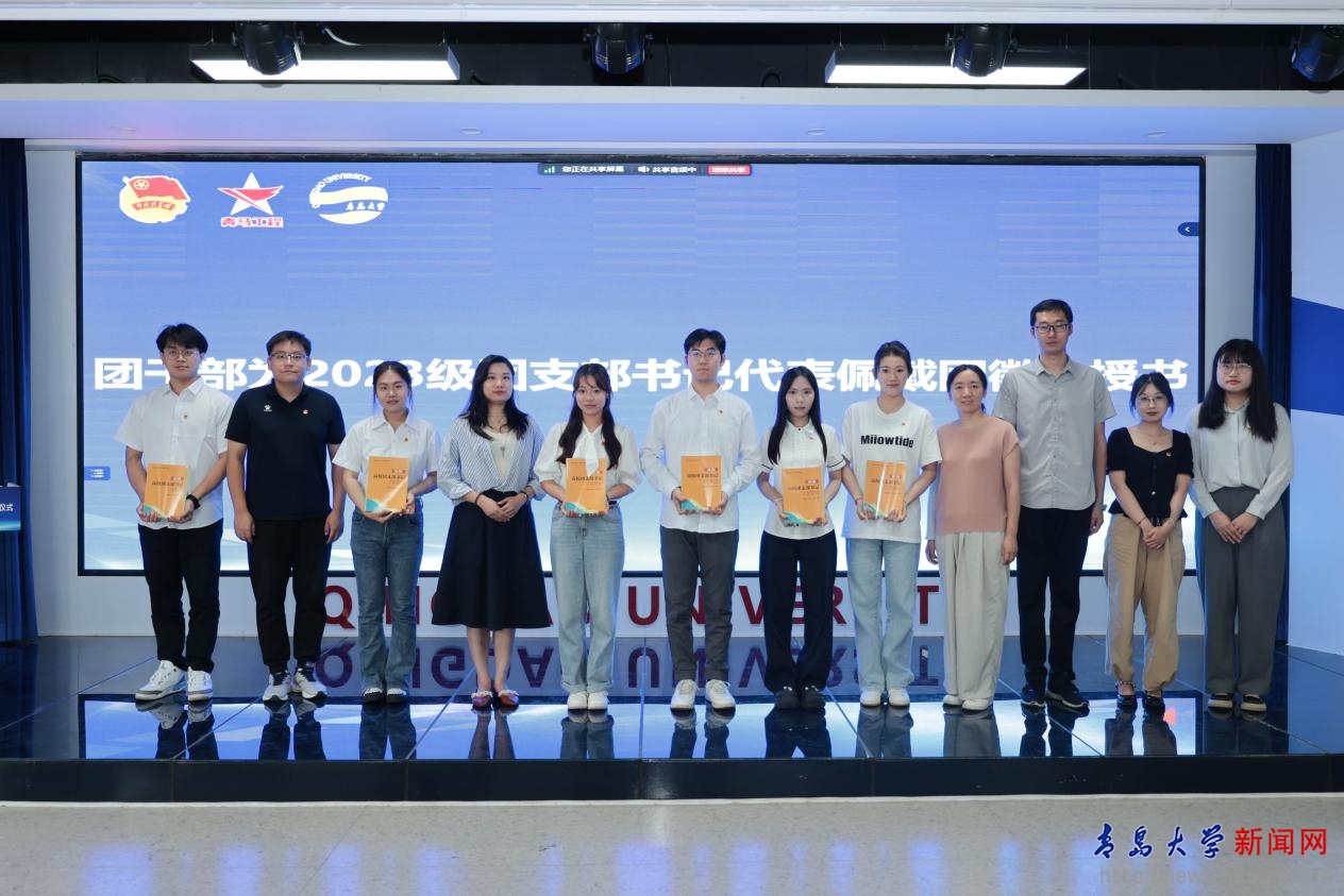 團干部為2023級團支部書記代表佩戴團徽、授書。在重溫入團誓詞環(huán)節(jié),由2023年“青馬工程”大骨班各團支部團支書領(lǐng)誓。