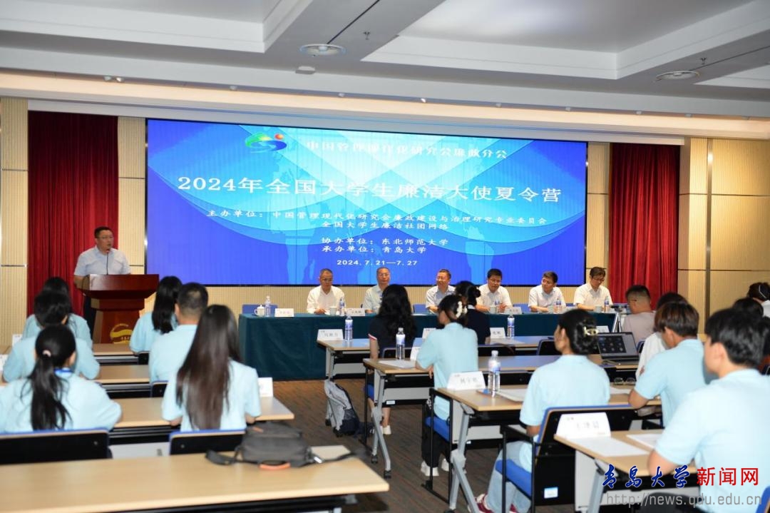 新聞網訊 7月22日,由中國管理現代化研究會廉政建設與治理研究專業(yè)委員會(以下簡稱廉政學會)、全國大學生廉潔社團網絡主辦,東北師范大學協(xié)辦,我校承辦的“2024年全國大學生廉潔大使夏令營”在浮山校區(qū)會議中心404室舉行開營儀式。校黨委常委、紀委書記、省監(jiān)委駐青島大學監(jiān)察專員徐大連,廉政學會會長、北京大學中國政治學研究中心學術委員會主任何增科,廉政學會副理事長范玉斌,校紀委副書記張利,校紀檢監(jiān)察學院院長陳洪連以及紀檢監(jiān)察學院師生出席開營儀式,儀式由廉政學會副會長、東北師范大學廉政研究中心主任李紅權主持。