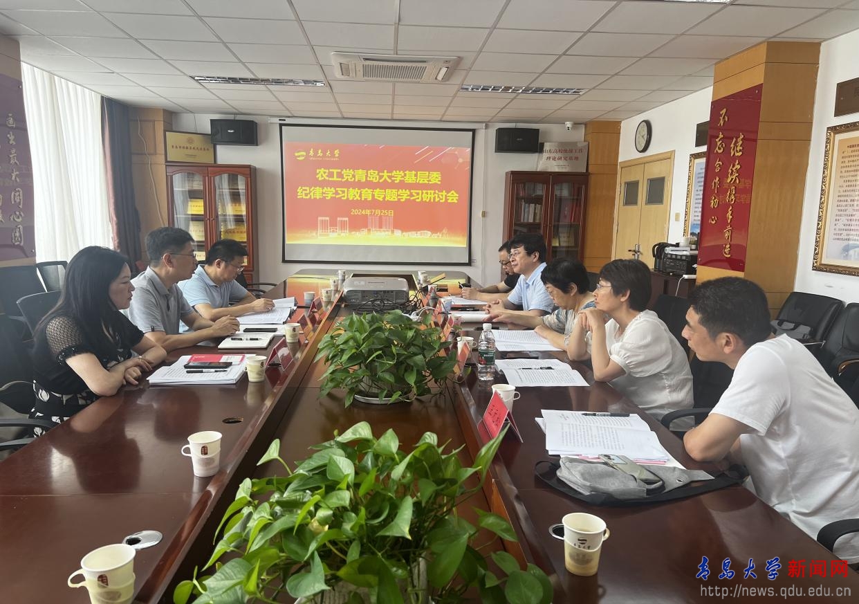 新聞網訊 7月25日,農工黨青島大學基層委員會在辦公樓401會議室(統戰之家),召開紀律學習教育專題學習研討會。會議由農工黨青大基層委主委徐文華教授主持,農工黨青島市委會副主委王勇杰,黨委統戰部負責人及農工黨青大基層委各支部主委參會。