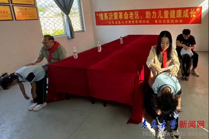 農工黨黨員、附屬醫院小兒外科名譽主任邢茂青,五支部委員、附屬醫院嶗山院區護理與院感處護理管理辦公室副主任張雯及脊柱外科醫師邵佳樂等組成的醫療團隊,現場為北申莊小學學生進行了脊柱側彎篩查。